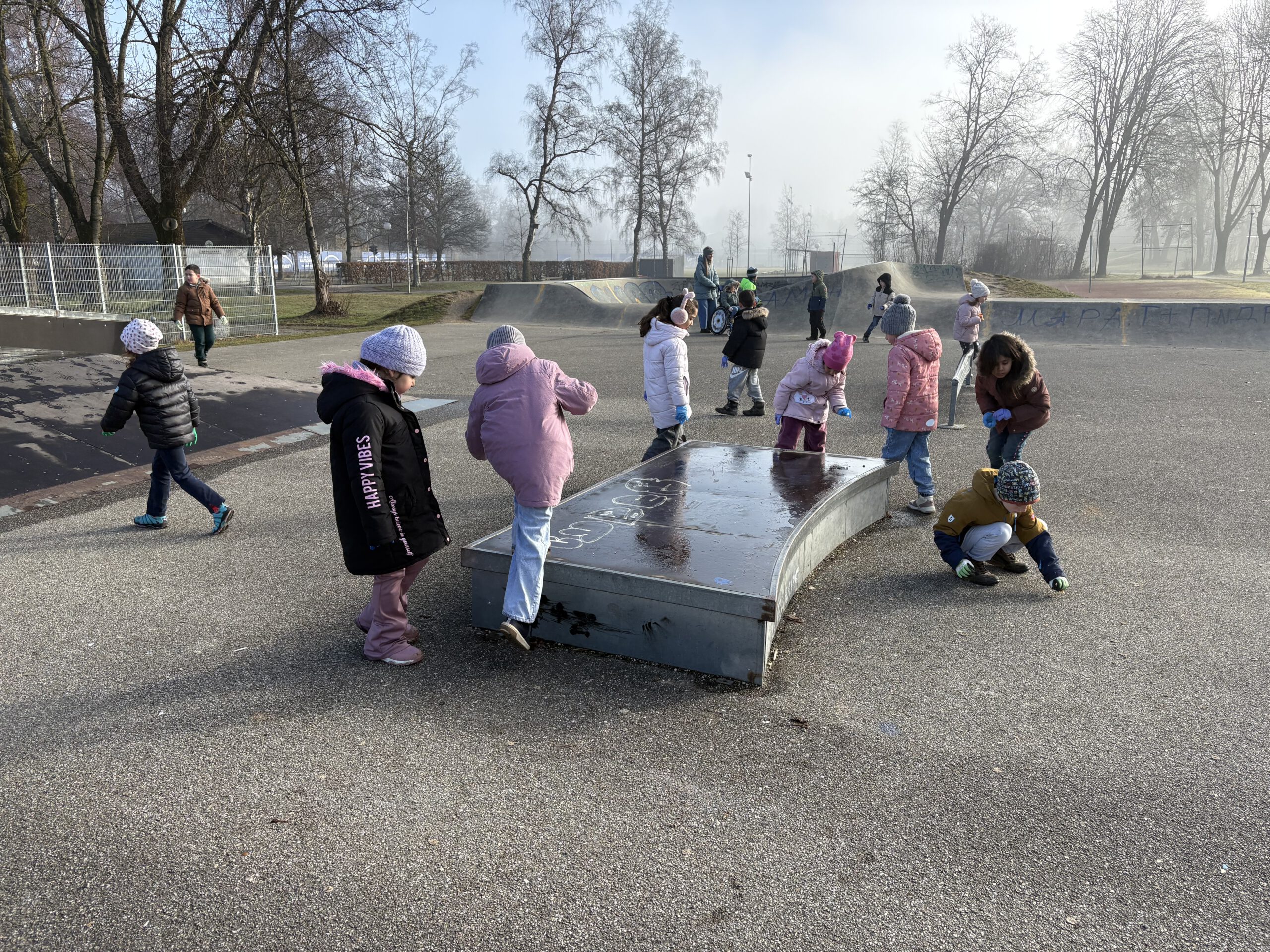 Bei winterlichen Temperaturen unternahmen einige Klassen einen gemeinsamen Ausflug zum Schlittenfahren. Mit viel Begeisterung nutzten die Schülerinnen und Schüler den Schnee, um sich an der